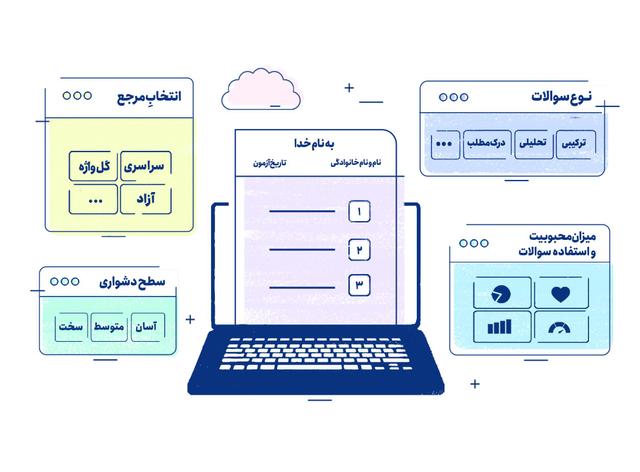 - سوالات آزمونهای سراسری داخل و خارج از کشور، شبیهساز آزمونهای قلمچی و سنجش